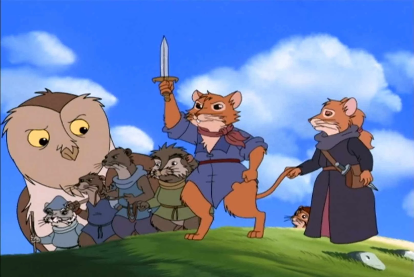 Martin and company survive the rapids but must march to the now distant Marshank as the Fur and Freedom Fighters prepare for the final curtain, saying their emotional farewells before battle. As the fighters are driven back, Martin's small band crests a ridge where they see that ALL the good creatures they have met in their journey have assembled, ready to join him. He gives the order and charges to the rescue. Reunited, the fighters assemble for the final charge-- Marshank will be theirs!