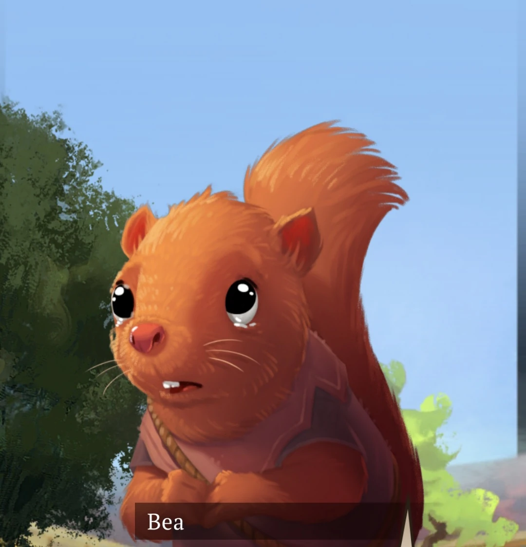 Bea was a young female squirrel, and the daughter of Beau. After she dropped her badger doll in the Redwall Abbey Pond, a giant trout consumed it.