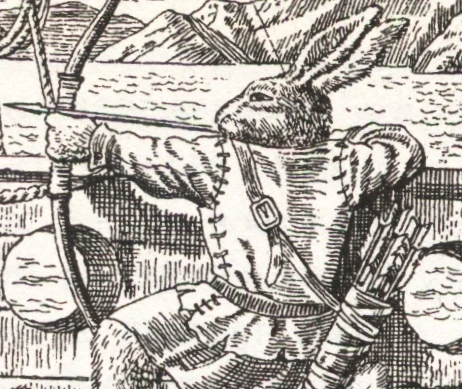 Assisted by Rufe Brush, Oak Tom, and Treerose, and, in a last minute gesture of bravery, a remorseful Pakatugg, they managed to rescue the slaves. In spite of the overwhelming number of enemies who opposed them, the heroic hares covered their escape by attacking the rats. The last stand against Greypatch's hordes of searats was the most desperate and gruesome battle of the Long Patrol. Using longbows, lances and daggers, the hares threw themselves against their enemies, all the while joking and laughing.