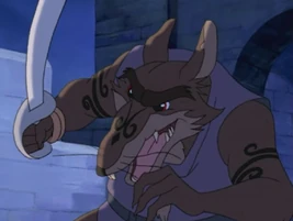 In the Nelvana Redwall TV Series, Fangburn's death was still at the hands of Constance but it occurred in a different manner. Once Constance broke free with the help of the shrews, she started throwing rats around, proclaiming "Cluny is yours, Matthias the Warrior." Then, she grabbed Fangburn, announcing "YOU ARE MINE!" The audience never saw the exact moment of death; however, a close-up of Fangburn screaming and a zoom-in of Constance's mouth occurred, fading to black with a crunching sound in the background, implying she may have bitten him to death.