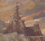 Fort Bladegirt stood at the edge of high rocks near a cove. It was built of solid rock and was enclosed by heavy wooden doors, a courtyard, a high wall, and surrounded by high hills on three sides. The interior of the fort included a great banquet hall which featured, on one side, high windows overlooking the sea and, on the other side, a cloth wall hanging covering the wall from ceiling to floor. The hall contained the King's throne, carved out of rock and covered with the skins of slain enemies. Deep beneath the fort were prison cells seeped in sea water. Underneath the hall, a stairwell led to a pit where Gabool kept Skrabblag.