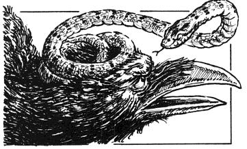 Skurr made a pact with Baliss the Slayer, the blind adder, who was to intimidate the creatures of Redwall Abbey on his behalf. Skurr later regretted this decision when Baliss turned on him and killed his Wytes. The raven was terrified of the adder, but had no means to stop him, causing Skurr to lose respect among his followers. The agreement also caused Sicariss to grow distant from Korvus, eventually leading to his discovery of her deception. He threw her to Welzz in a fit of anger.