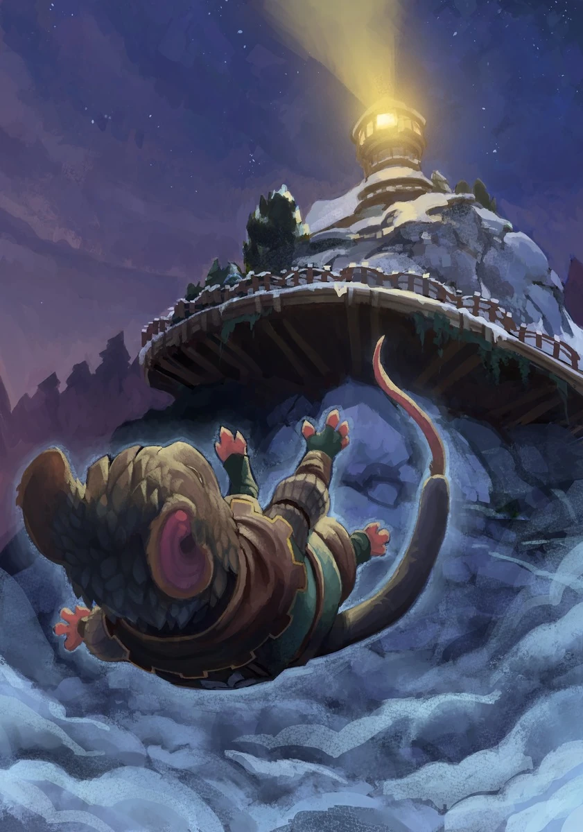 Sophia heads towards Lilygrove to light the village's lighthouse and alert other nearby towns that they need help, but a large crew of sea rats steadily makes their way towards the village as well. She escapes into the Lilygrove Catacombs, where she sneaks past sea rats to find an injured and poisoned Liam captured by Scumsnout. Sophia calls out to Scumsnout in an effort to distract him, and the villain soon gives chase through Lilygrove. Sophia reaches the top of the village Lighthouse and successfully lights it, calling in reinforcements from all across Redwall country. However, just as she relishes in her victory, Scumsnout appears and throws her from the Lighthouse.