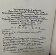 Let's look at some examples of Redwall copyright pages that signify IT IS NOT a first edition.