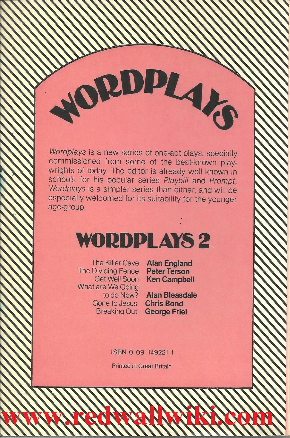 Wordplays 1 was the first in a series of one-act play collections commissioned and edited by Alan Durband. It was published by Hutchinson in the UK in 1982.